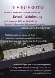 Die Bücherei St. Laurentius lädt zu einer Krimi-Weinlesung ins Lembecker Pfarrheim ein.