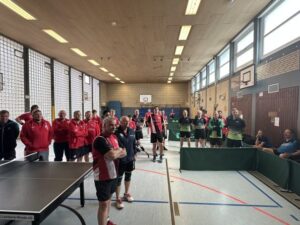 Sportlich setzten sich die beiden Teams des TTV Hervest-Dorsten als Gruppensieger (TTV II) bzw. Gruppenzweiter (TTV I) in den Vorrundengruppen durch und spielten im Halbfinale gewissermaßen das vorgezogene Endspiel aus. Im anderen Halbfinale standen sich ein Team aus Rhade und Schermbeck gegenüber, im Endspiel siegte der TTV I ungefährdet gegen Rhade, was aber eigentlich für die Veranstaltung eher eine Randnotiz war. Vielen Dank an alle Teilnehmenden und natürlich vor allem an die Ausrichtung durch den TTC Lembeck!