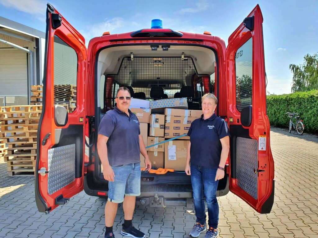 Von den insgesamt 38 Feuerwehrkameraden und Kameradinnen hat das Ehepaar Lothar und Manuela Badberg dann Geld zusammengetrommelt und speziell benötigte Sachspenden gekauft und gesammelt. Die örtlichen Händler aus Marx (Wittmund) haben noch 300 € draufgelegt, so Manuela Badberg.