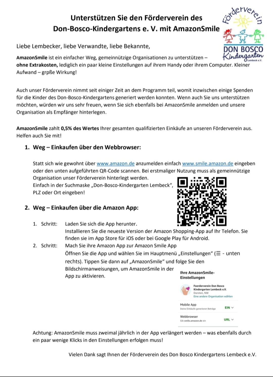 Förderverein bittet um Unterstützung mit AmazonSmile