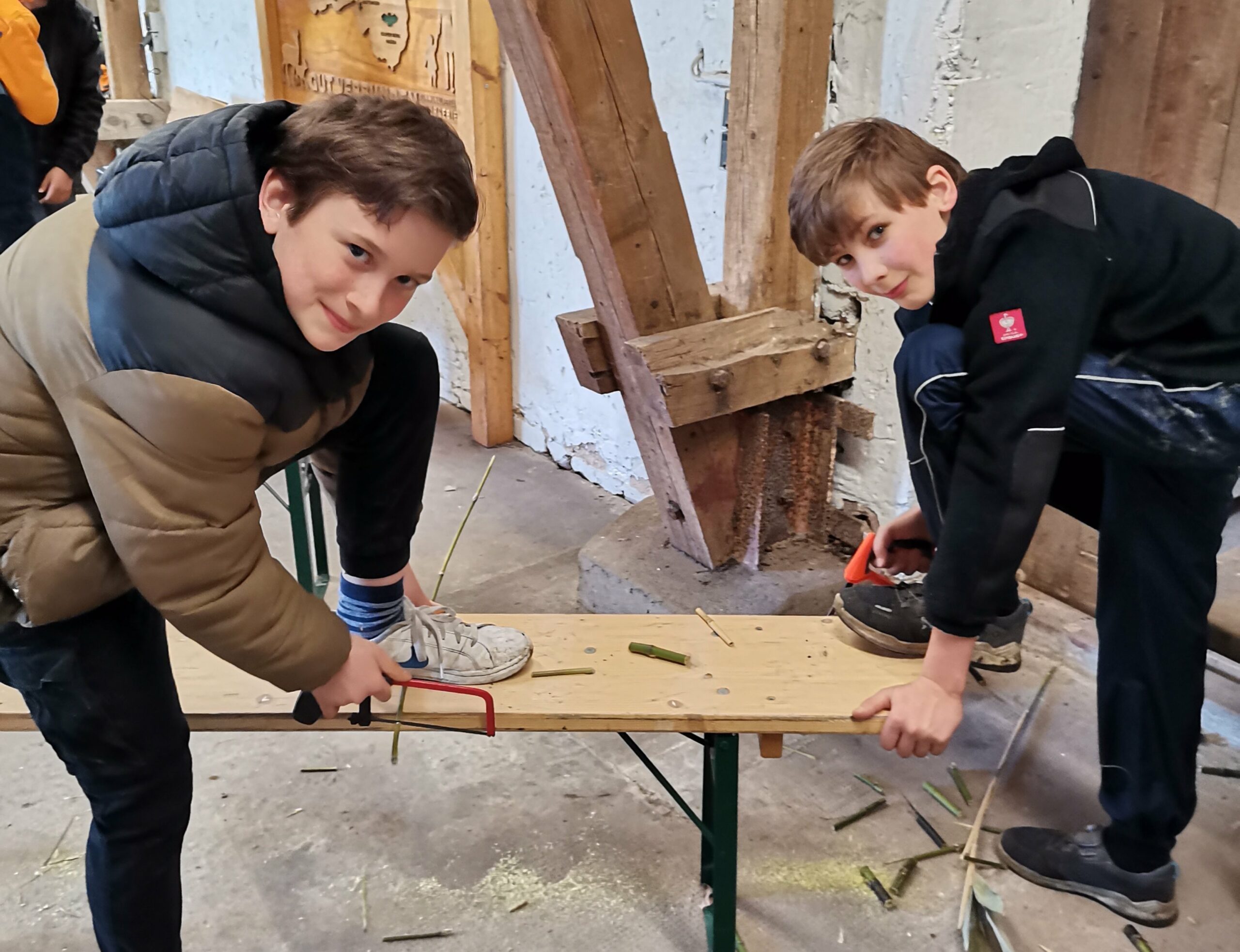 Projektleiter Thorsten Maler, angehender Naturtrainer, baute bereits im Vorfeld große stabile Holzkästen am Heimathof Lembeck, quasi als Rohbauten für die Insektenhäuser. Die Innenausstattung mit Holz, Lehm und Bambus übernahmen die Teilnehmer:innen mit viel Geduld und Ausdauer. Dies forderten insbesondere die unzähligen Bambusstäbchen, die jeweils gesägt, gebohrt und geschliffen werden mussten, damit die Flügel der kleinen Wildbienen nicht verletzt werden. Trotz der hohen Arbeitsintensität und des kalten Wetters hatten alle viel Spaß an dem Projekt. Toll war auch, dass insgesamt sieben engagierte Helfer von der Biologischen Station und vom T.O.T. das Projekt tatkräftig unterstützten.